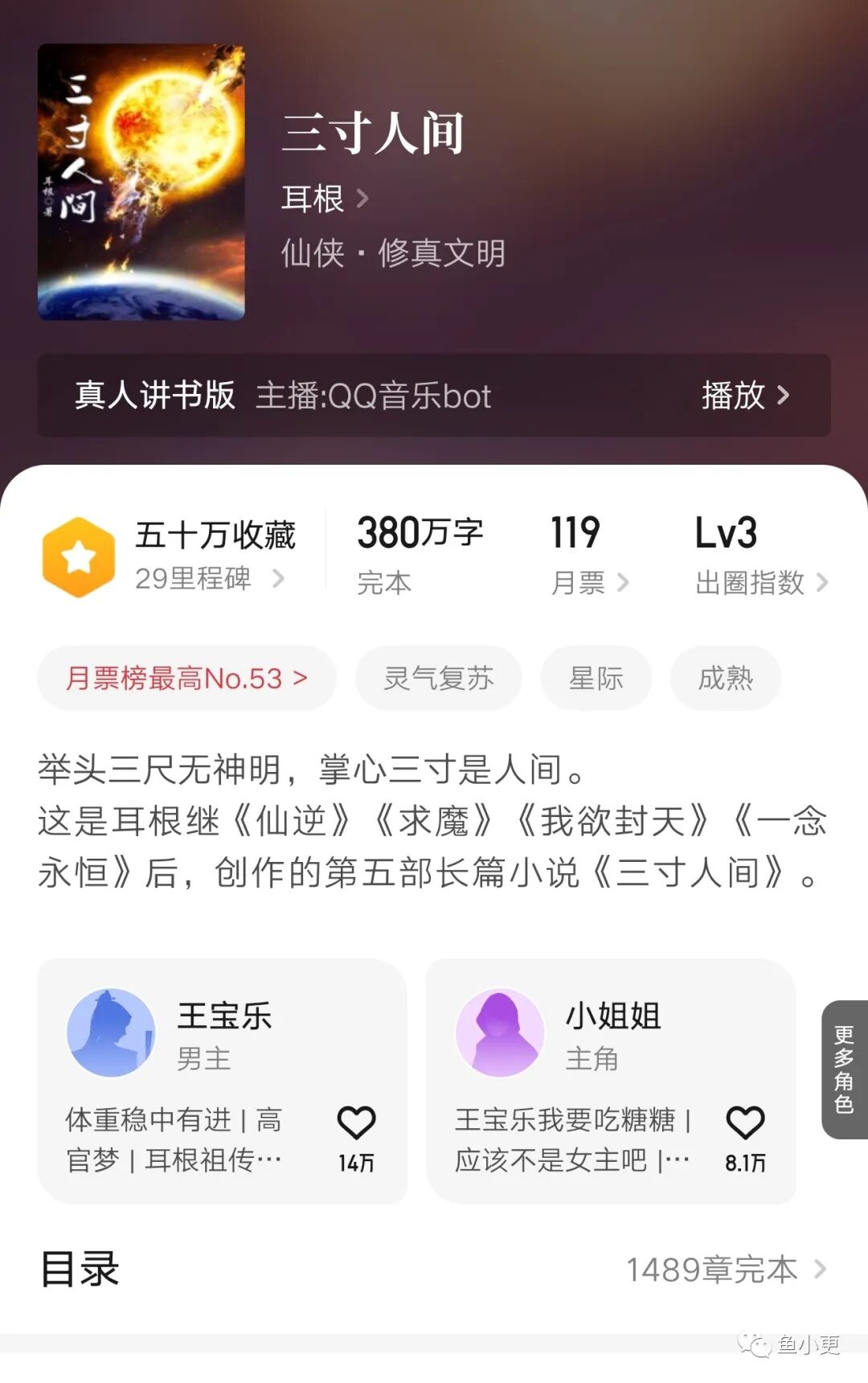 前面小鱼说过《仙逆》、《求魔》、《我欲封天》,以及《一念永恒》,今天就来推荐耳根第五本书《三寸人间》。