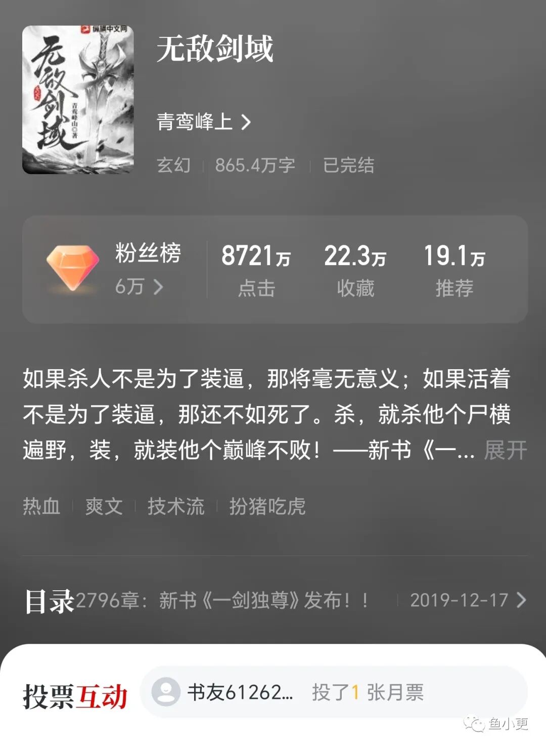 青鸾峰上是纵横大佬级别的作家,它写的小说细节不是很出众,但把“爽文”发挥得淋漓尽致。