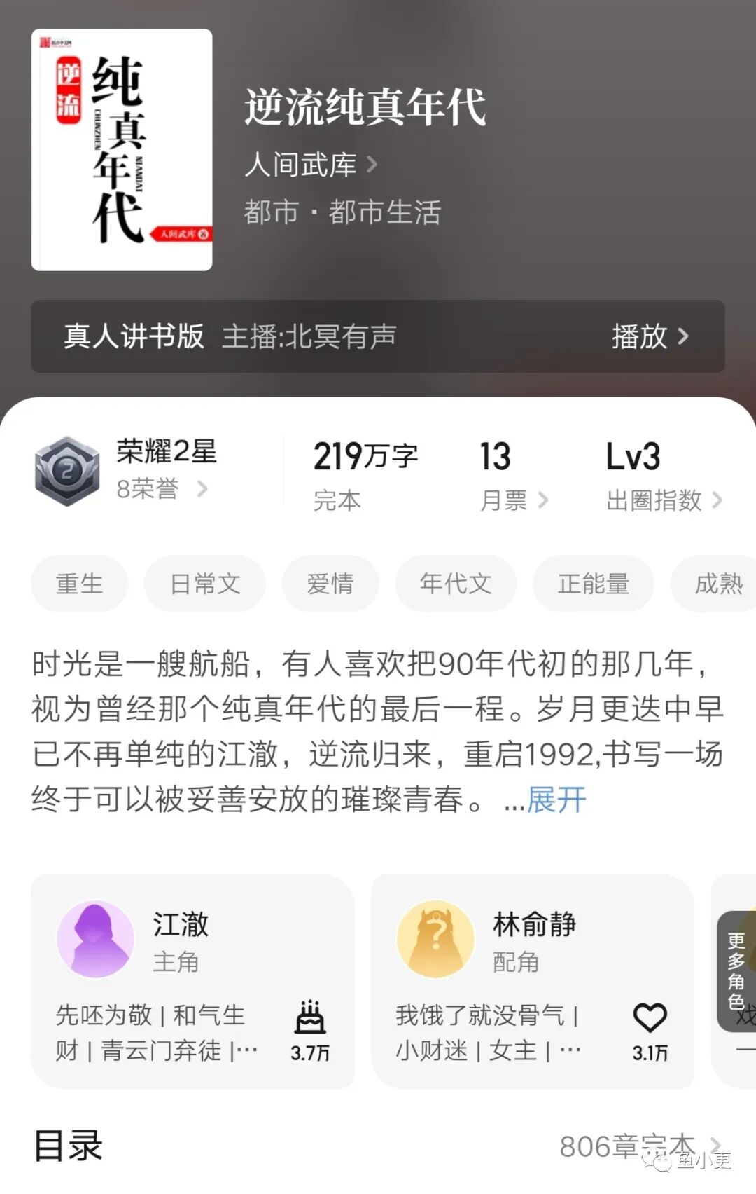 总结:本书大纲套路不算新鲜,都是重生回到九十年代造富神话。对比其他作者写的主角只有造富,而不注意情感和细节,人间武库写的这本书就丰富精彩多了。