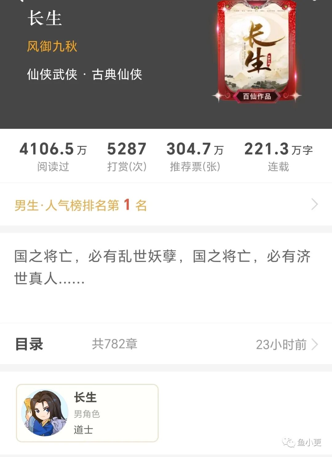 对于这本书,小鱼看了百来万字,虽说没有全部追更,但也真切体会到何为传统修仙文。把一个普通凡人角色,是如何一步步去追寻修仙长生的。