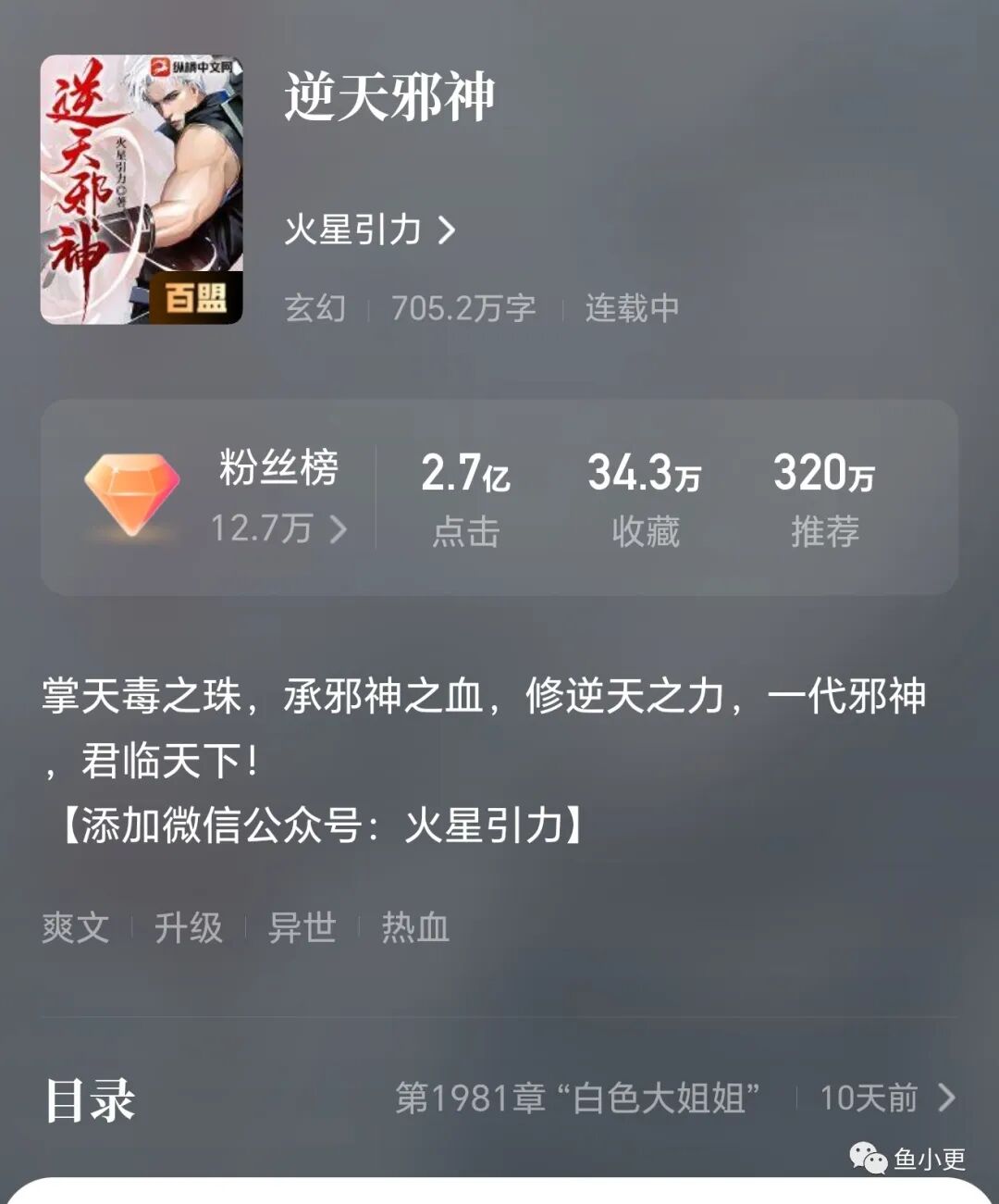 《逆天邪神》,有不少读者让小鱼推荐这一本书,说是什么启蒙第一本小说。小鱼无法拒绝,就去搜索看了一下,感觉还不错,所以就推荐给没看过的小伙伴们。