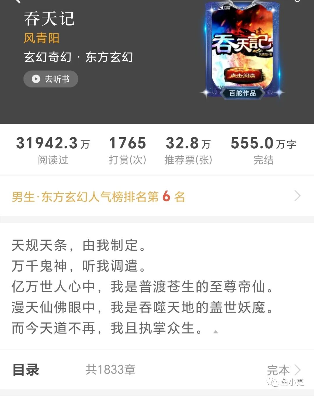 《吞天记》总字数不多,但阅读人次却达三个多亿,外网热度可想而知。