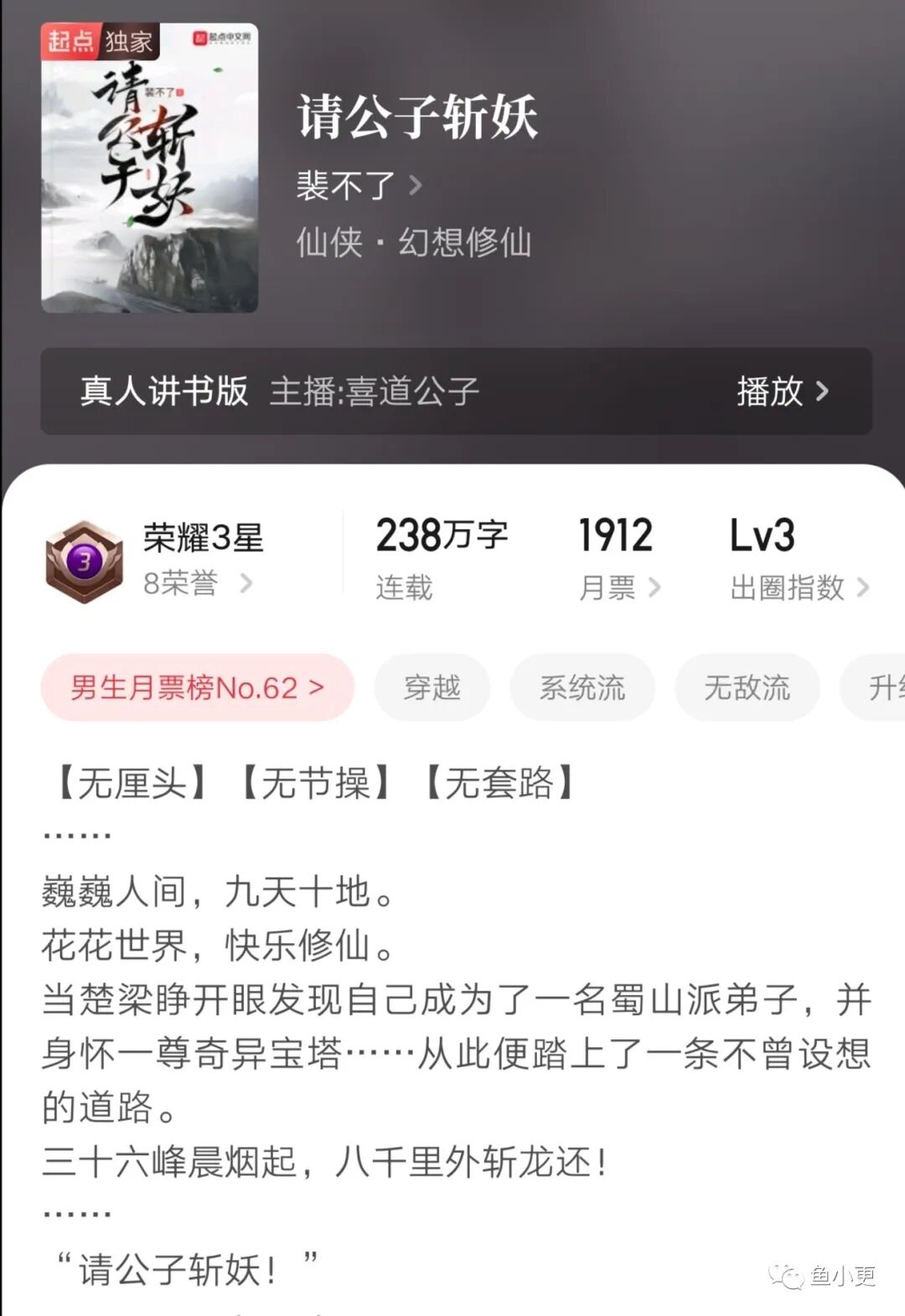 《请公子斩妖》如今还在更新中,就获得起点荣誉三星,这在一众小说中,都能排的上号,属于精品中精品了。