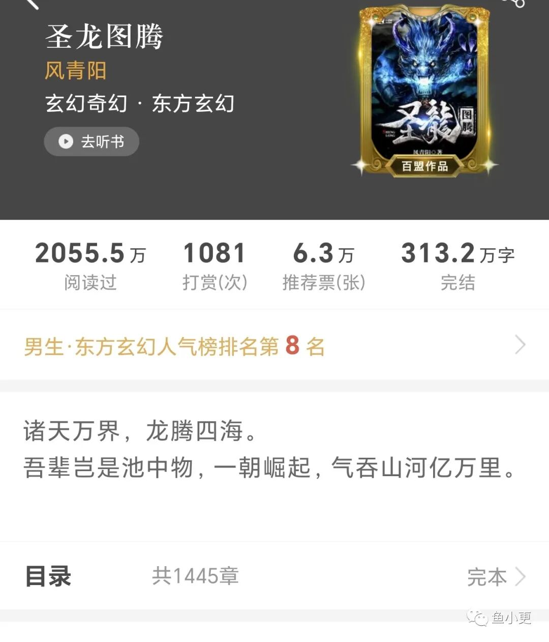 对于《圣龙图腾》这本书,小鱼感觉比那第一神第一仙好看多了。无独有偶,主要字数才三百万左右,没那么多水字数环节,副本全都是大开大合,加上主角装十三套路少,废话不多。看起来别有一番回到十几年前看小说的激情。