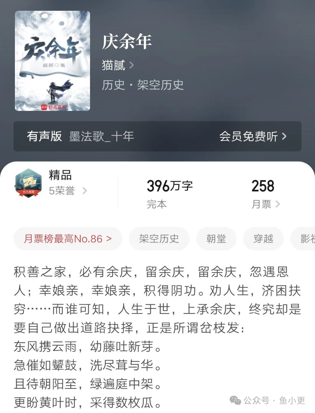 《庆余年》是猫腻封神之作,他靠这本书成功上位大神称号。也仅此而已,对比中原五白还是逊色不少。