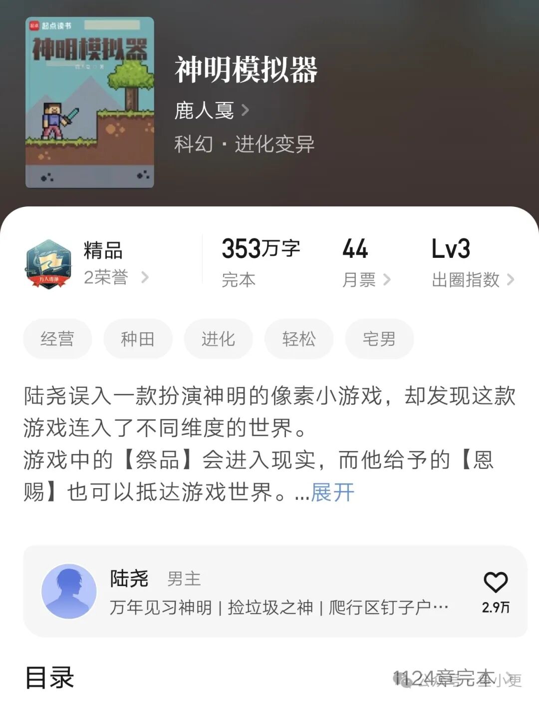 《神明模拟器》这本书作者不是什么大神,但文笔还算不错,也是一本精品小说。