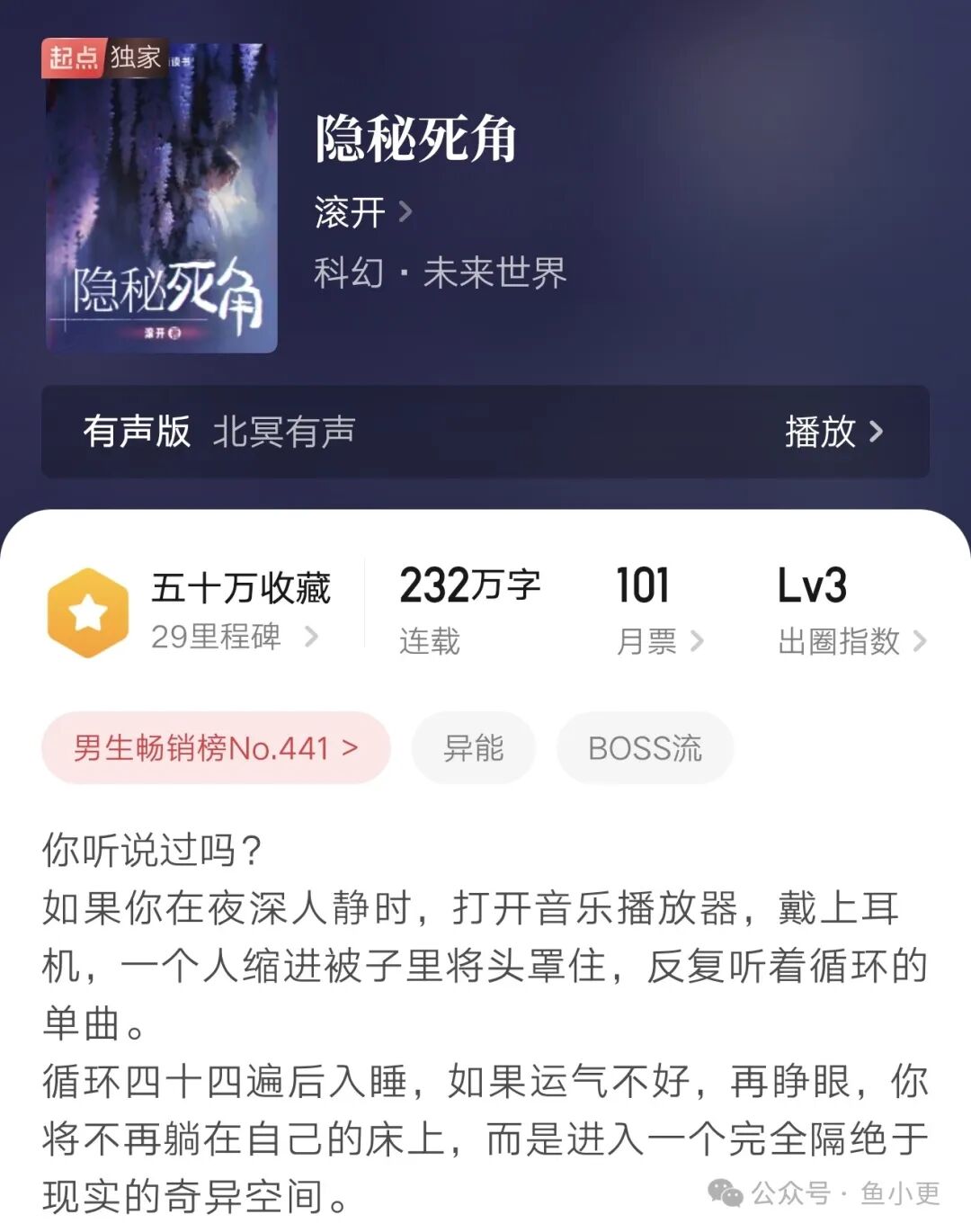 简介 你听说过吗?如果你在夜深人静时,打开音乐播放器,戴上耳机,一个人缩进被子里将头罩住,反复听着循环的单曲。