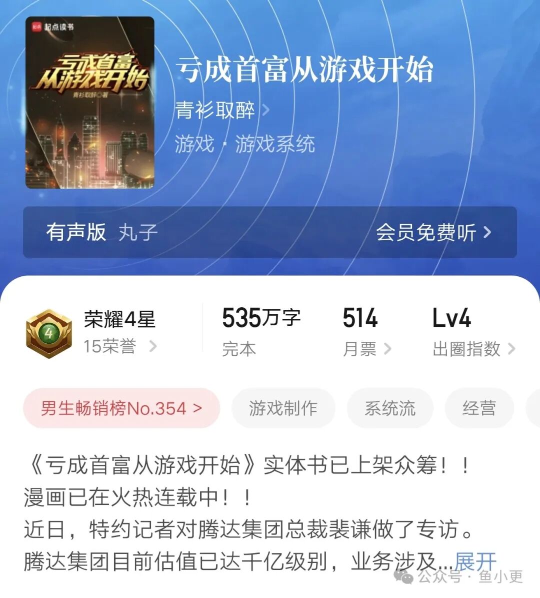 《亏成首富从游戏开始》的这本书,获得荣誉四星,还入了上海图书馆百部精品之一,说明读者追捧热度一点都不低。