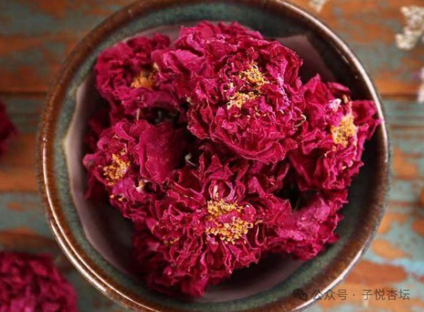 第一味是玫瑰花,味甘微苦,性温,归人体的肝、脾二经,具有理气解郁,活血散结。泡玫瑰花的同时,再辅助几个小搭档,更能疏肝理气。