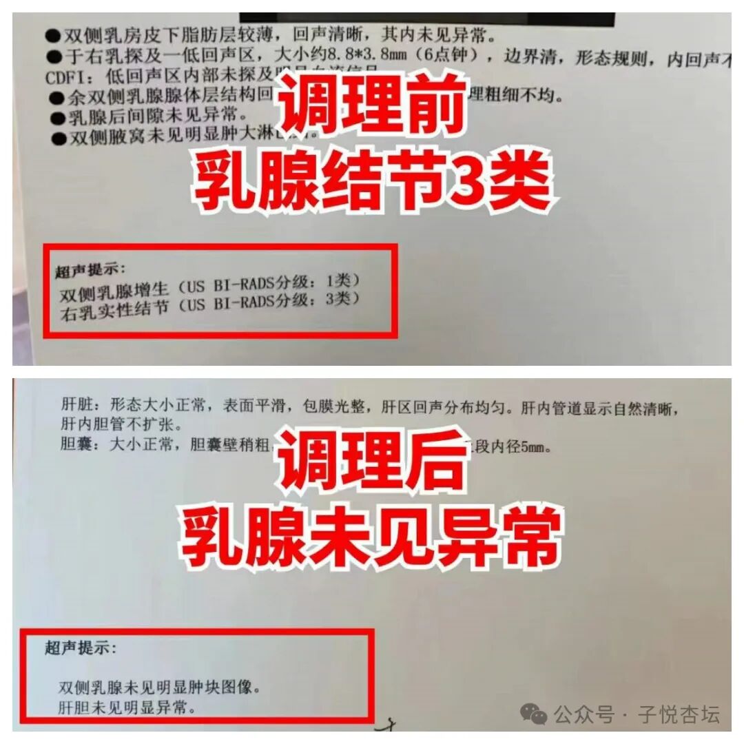经过几个月的不懈努力,感到结节明显减小、变软,双乳疼痛也减轻了,睡眠质量提高,白天有精神,工作效率也提高了。复查一切恢复正常,结节消失,心里的这块石头也放下了。