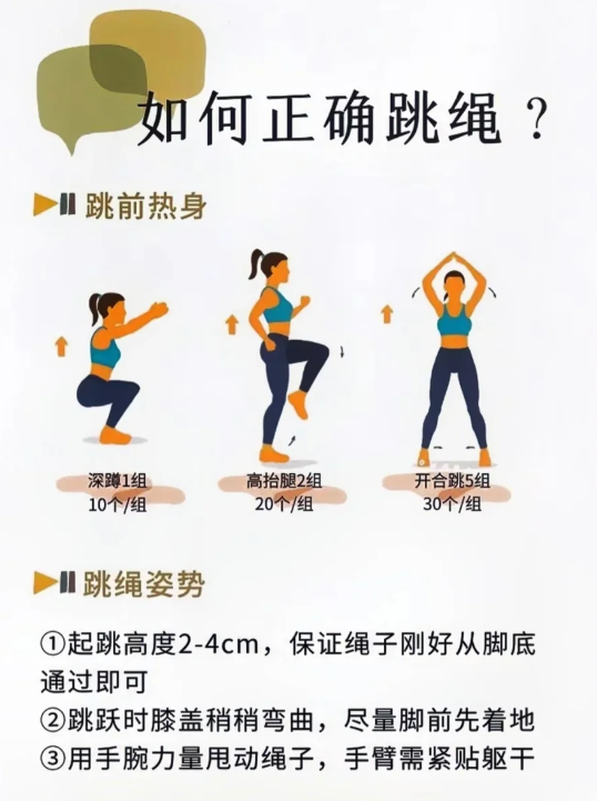 √加强阶段(第21天-第30天)跳绳300个,开合跳30个,高抬腿30秒,循环3组