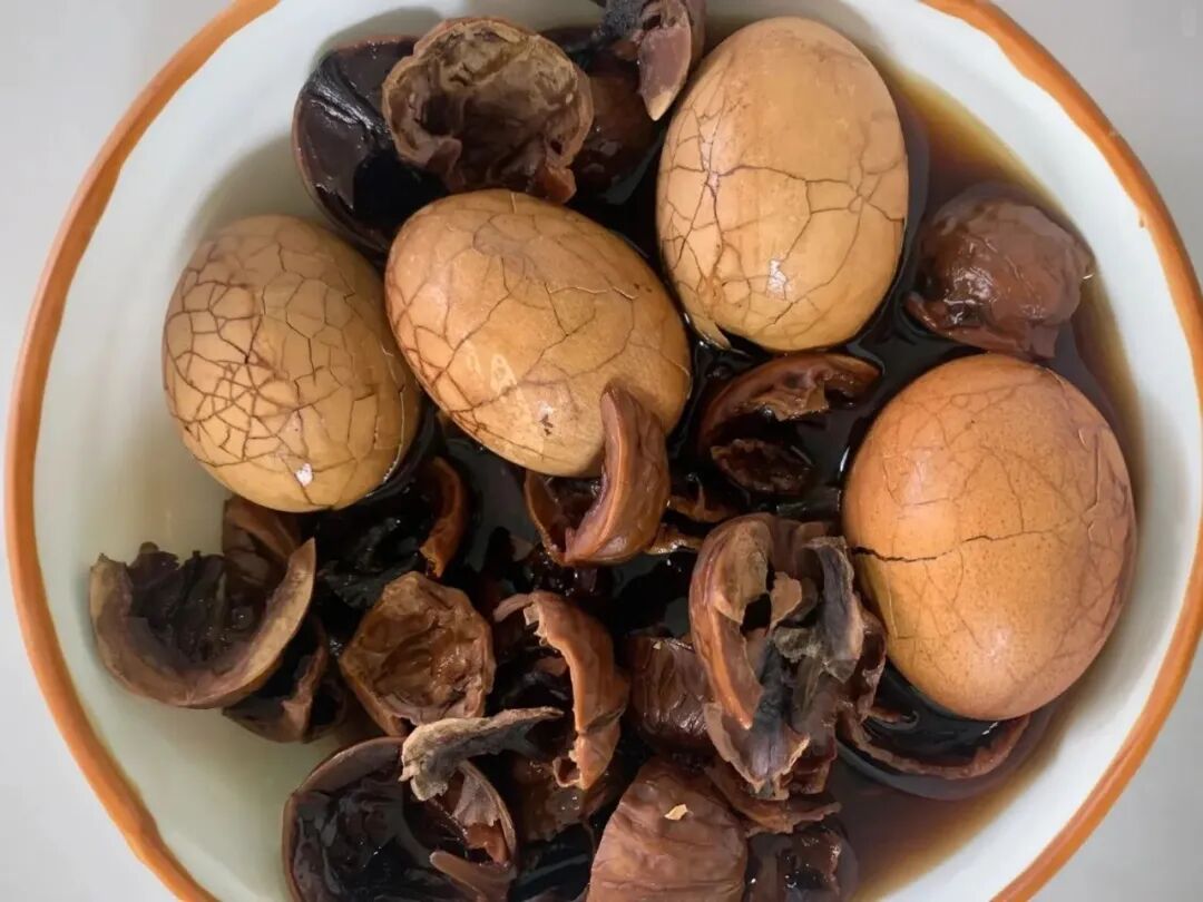 冷却后再放入6个鸡蛋,这时候再放盐,盐在这里也是关键,再把鸡蛋煮开后转小火,用勺子轻轻敲碎鸡蛋壳,再用小火继续煮上10分钟,关火后先不要着急吃,泡一个夜晚会更入味。