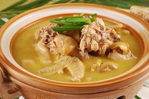 材料:母鸡1只,山药40g,核桃仁30g,香菇25g,笋片25g,火腿25g,料酒、精盐适量。