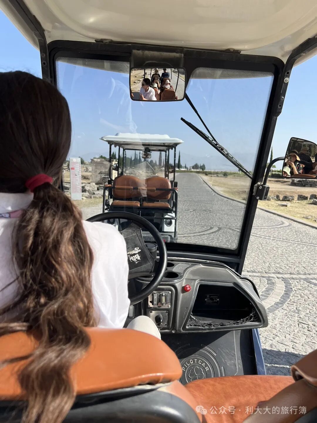 我们是从南门进,进门后就租了一辆电瓶车(带司机),1950 里拉一小时(约人民币440元,可坐6人,体验下来发现一小时完全够用)。价格不便宜,如果只是想打卡白色石灰岩区域那就不必坐车了,从南门步行几分钟就能到,但如果还想去古遗址打卡,那可以考虑考虑,毕竟真的很省时间和体力。