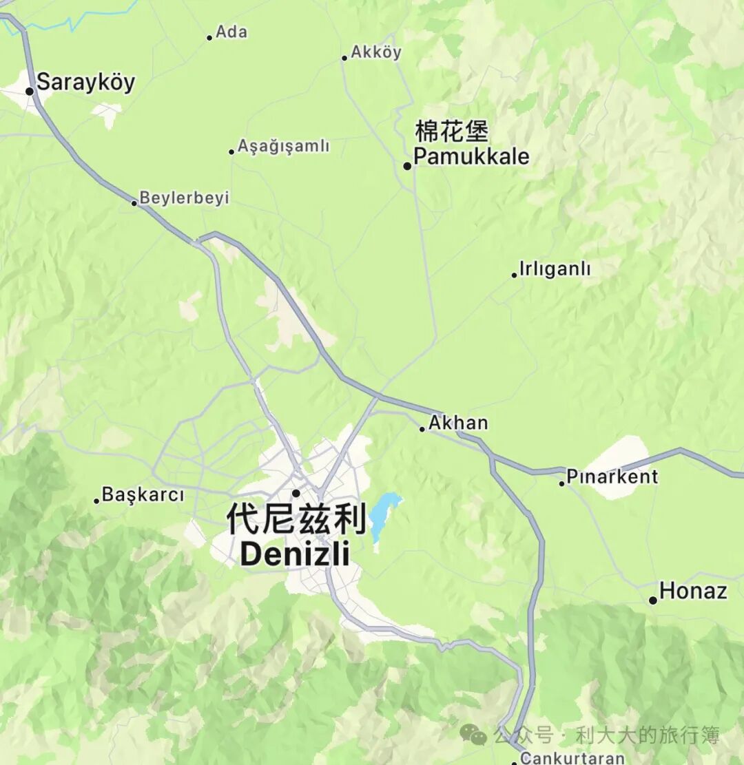 棉花堡的温泉也很有名,比较建议在这住一晚体验一下。温泉酒店基本都在景点附近,我们这次没有计划泡温泉,所以选择住在附近车程10几分钟的小镇代尼兹利(Denizli),酒店选择相对更多,性价比也更高一些。