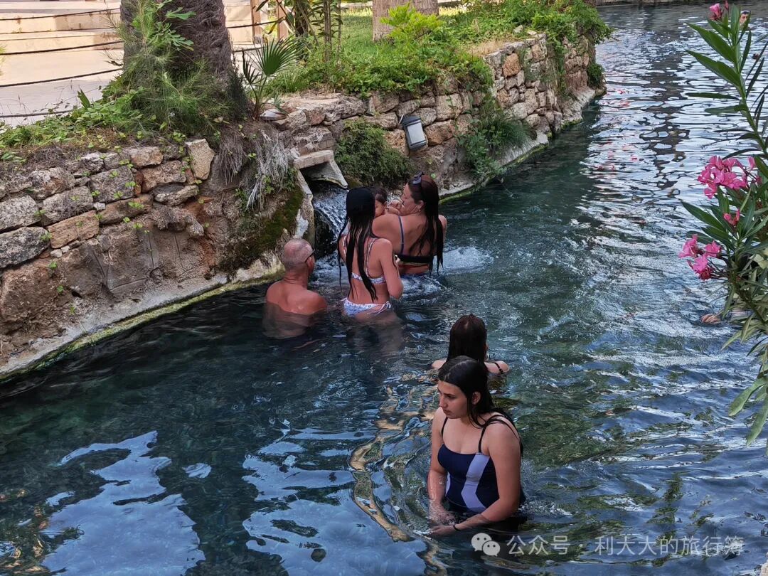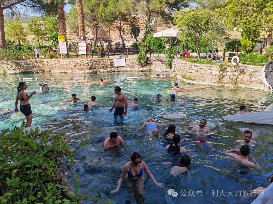 倒数第二站是温泉泳池,我们进去看了看,人真是不少,泳池里跟下饺子一样。因为没带泳衣就没下水玩,老外们倒是玩得挺开心。