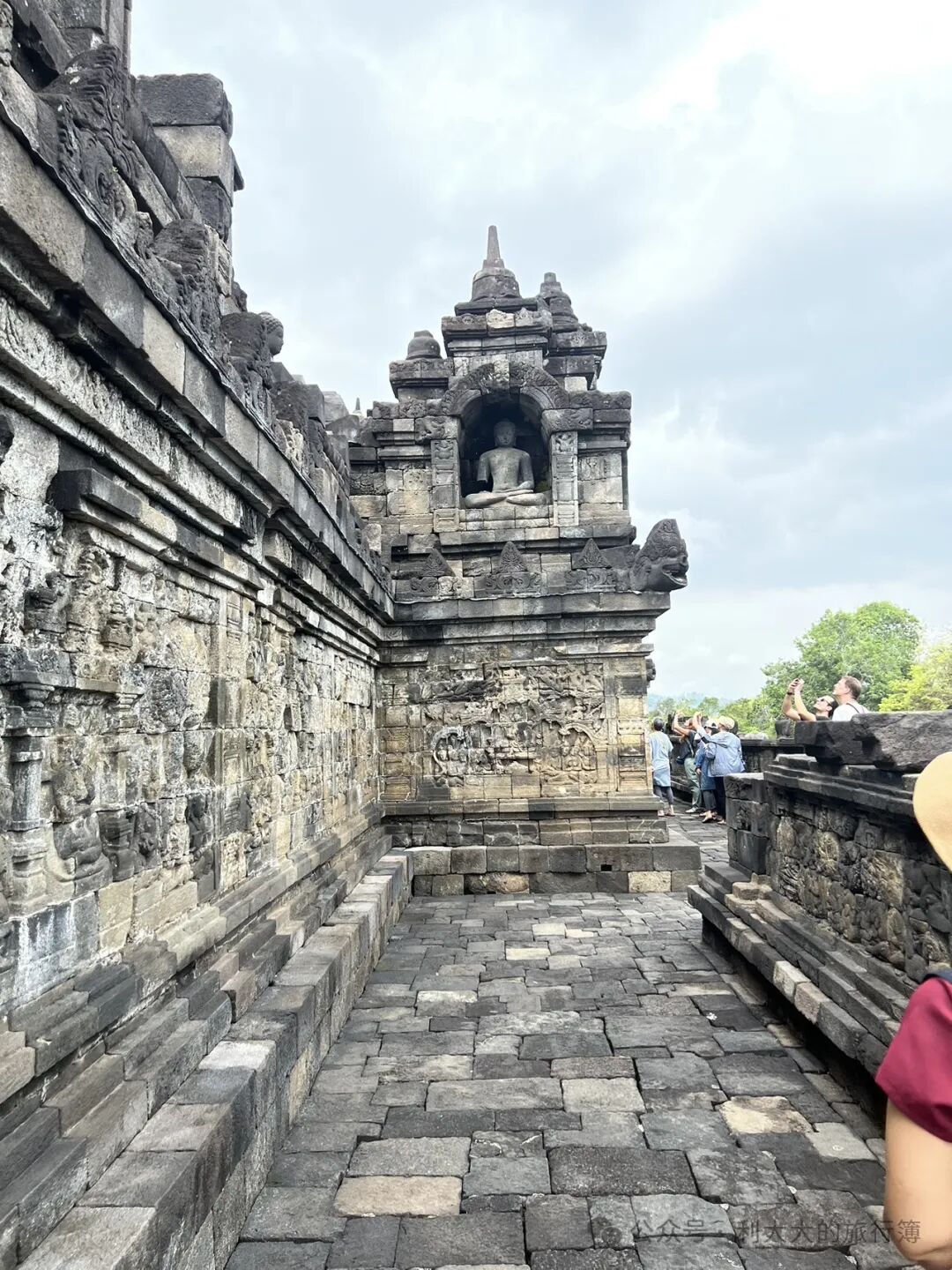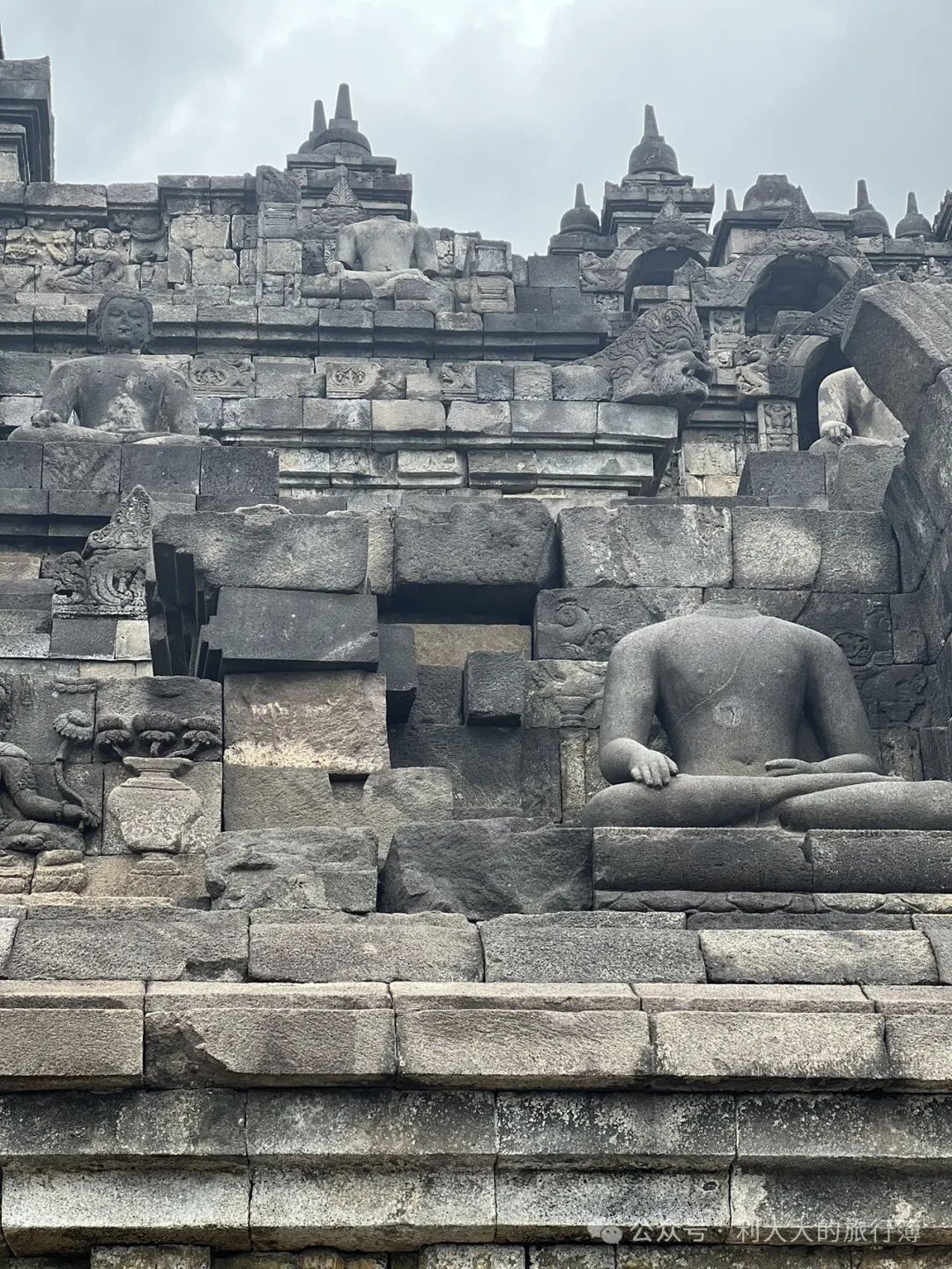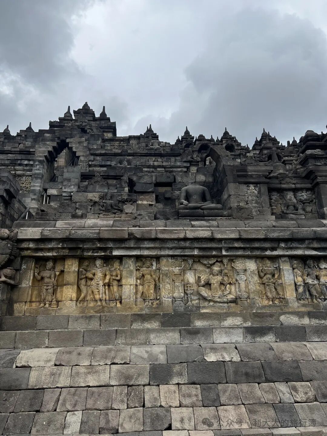 D3,包车一日游去婆罗浮屠和普兰巴南,在淘宝上随便找的一家,七座车一天(10小时)包车价格是399人民币。司机一大早就来接我们了,先去婆罗浮屠,离市区一个多小时车程。婆罗浮屠的名字意为“山顶的佛寺”,与长城,泰姬陵和吴哥窟并称为“古代东方四大奇迹”。
