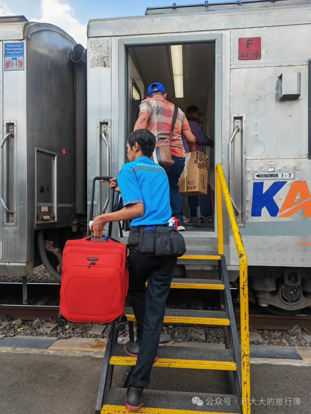 印尼的火车不需要提前太久来候车,也没什么安检流程,到了火车站找个自助机输入订单里的预定号可以打印车票。最高级的车厢感觉也就是跟咱们高铁二等座一个水平。火车上有盒饭卖,一份大概25RMB,味道一般,凑合着吃吧。