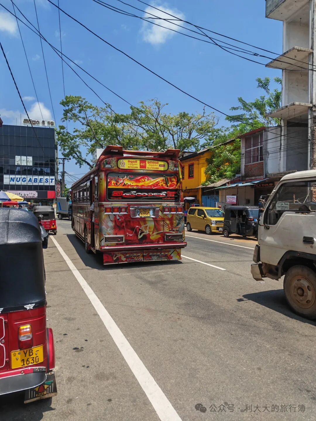 交通:由于曾经是英国的殖民地(再之前是葡萄牙和荷兰,但那个时期还没有车辆),所以汽车都是右舵靠左行驶。此外路况较为复杂,摩托车很多,很多路段甚至多过汽车,道路狭窄,很多时候就是双向两车道,对向汽车超车时甚至看到对面有车还继续逆行超车,逼得正常行驶的汽车不得不开到路边躲避。同时这边人力成本低,包车很便宜,因此两人以上就肯定应该包车,由当地人开车,租车自驾绝对是下策。此外由于都是右舵车的缘故,日本车很多,虽然同样使用右舵车的东南亚国家也是日本车的天下,但不同的是斯里兰卡有很多车(包括货车和大客车)很可能是从日本直接购买的二手车,车上贴的日文标识还在(也不能排除热爱日本文化的当地人后贴的,但可能性小)。也有很多印度TATA品牌的车,大客车喜欢装饰得花花绿绿,很有印度style。