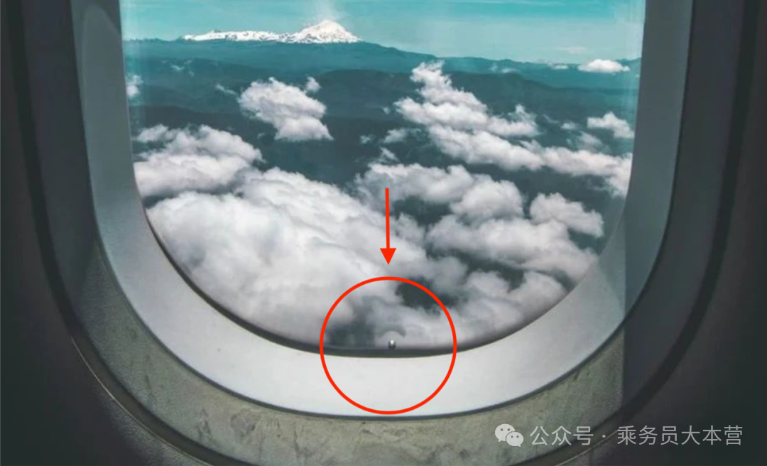 飞行时由于飞机内外压力的不同,透过这个小孔,压力可以直接作用于舷窗的外部玻璃上,以保护乘客不受伤害。