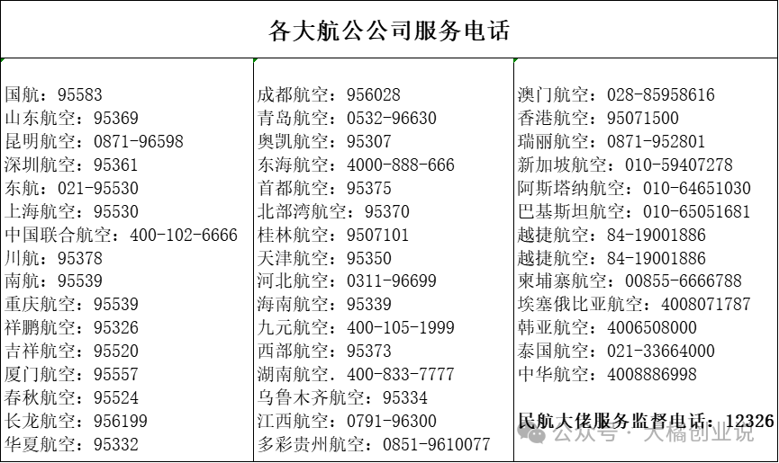 另附一张我自己做的航空公司客服电话明细表给你们做参考: