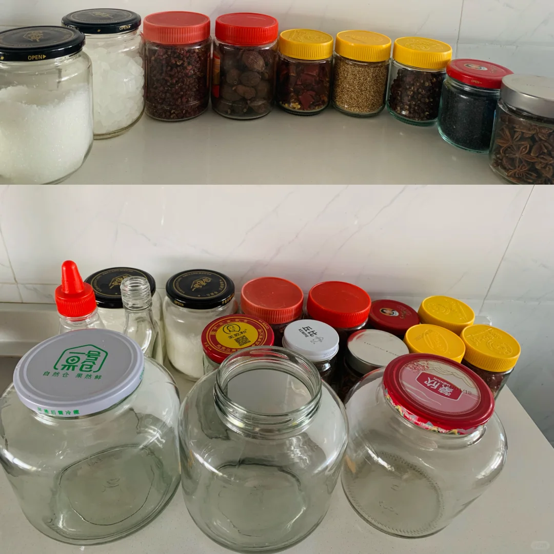 家里有老人的,应该常见这种瓶瓶罐罐,吃罐头剩下来的玻璃瓶,刷干净放在柜子里等着以后,