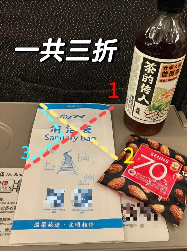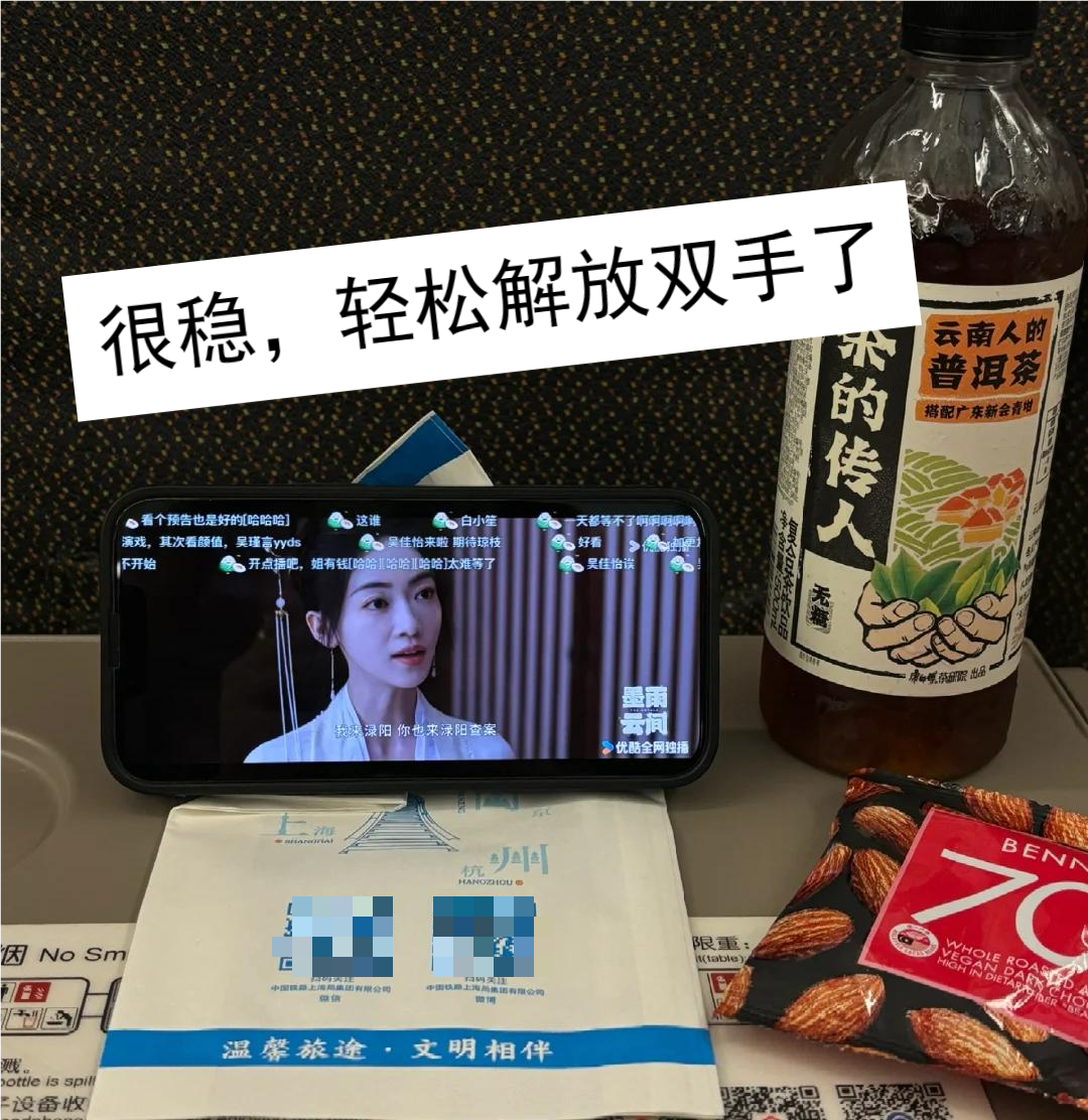 外出旅游出差坐高铁没有手机支架,用手拖着太累了,你可以使用高铁上面的清洁袋,自制一个手机支架。