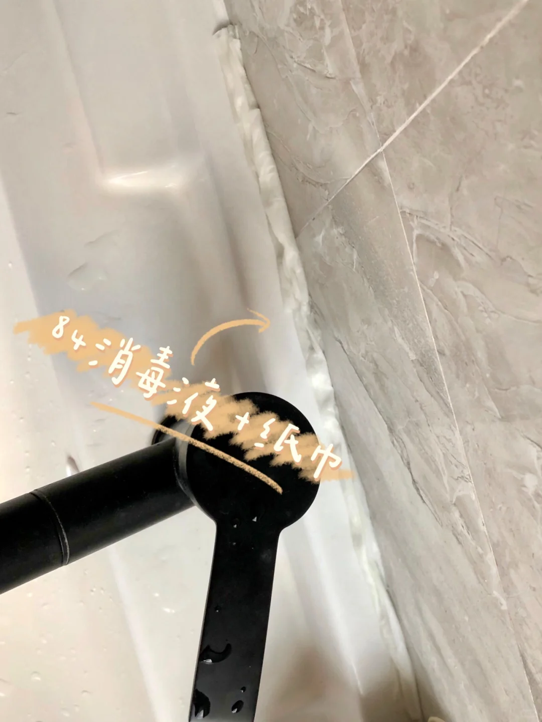 洗手盆周边积水发霉,不用花钱去买除霉啫喱一瓶好几十,用几次就没了,4块钱一大瓶的84消毒液就能除霉