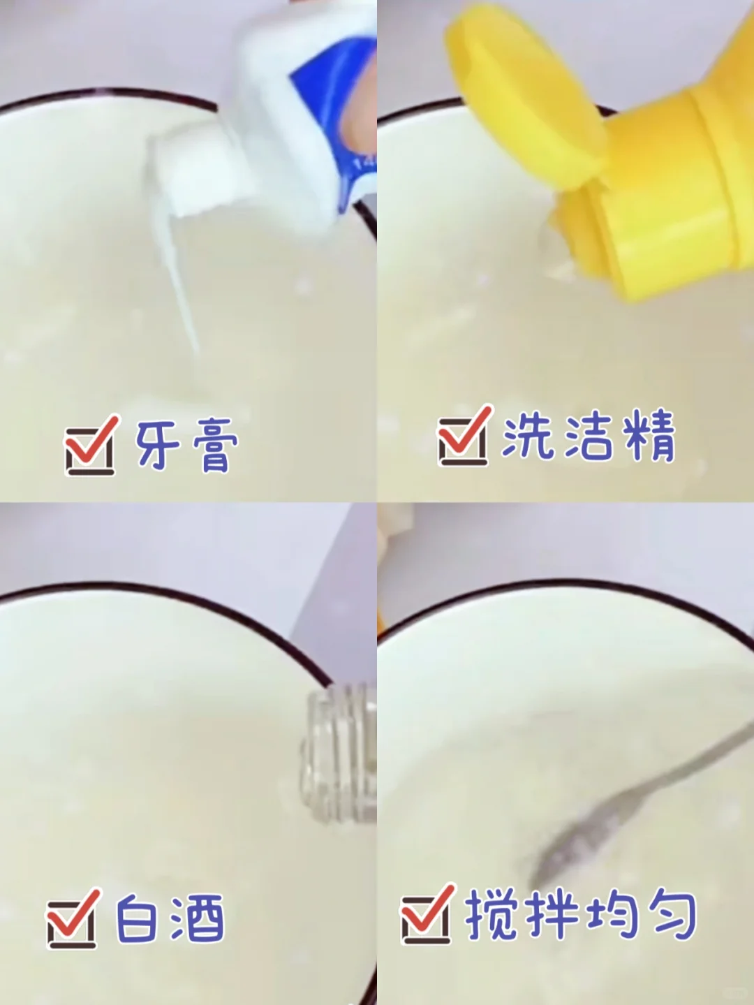 家里的大白墙弄脏了,简直太难看了,不用花钱买补墙膏,刷墙漆,水中加入牙膏、洗洁精、白酒,搅拌均匀,