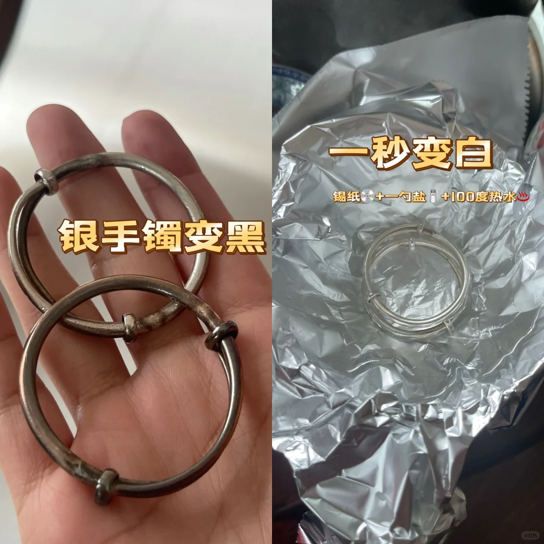锡纸的作用非常多,不仅可以当蒸架它还可以清洗银饰,家里的银镯子,银耳环放久了发黑可以将锡纸剪成小块,