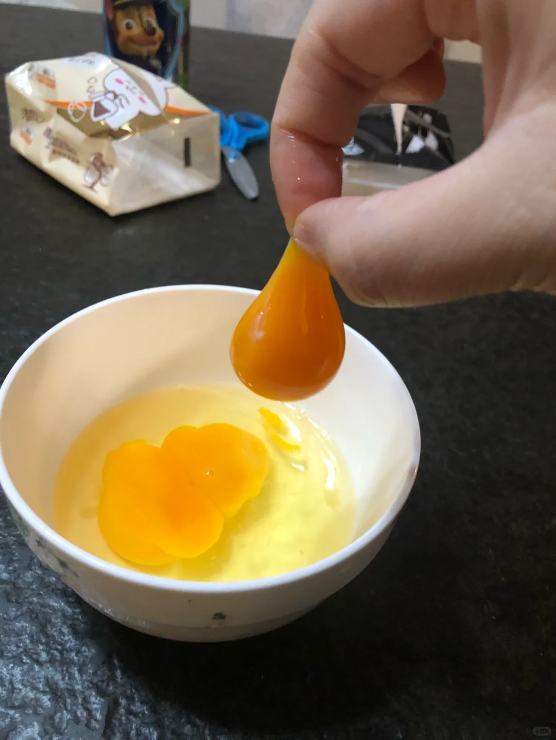 以前看到别人可以两只手把蛋黄捏起来,觉得是骗小孩的,但是没想到真的可以做到,