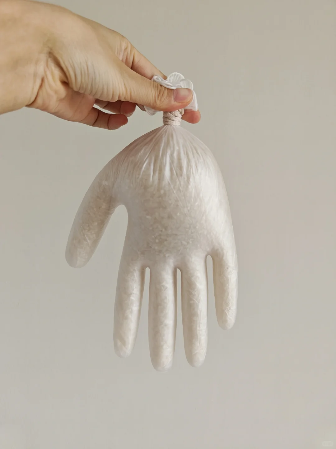 老一辈人喜欢“绑孩子”,现在这种做法已经被淘汰了,想要给孩子满满的安全感,可以将家里的一次性手套装满大米。