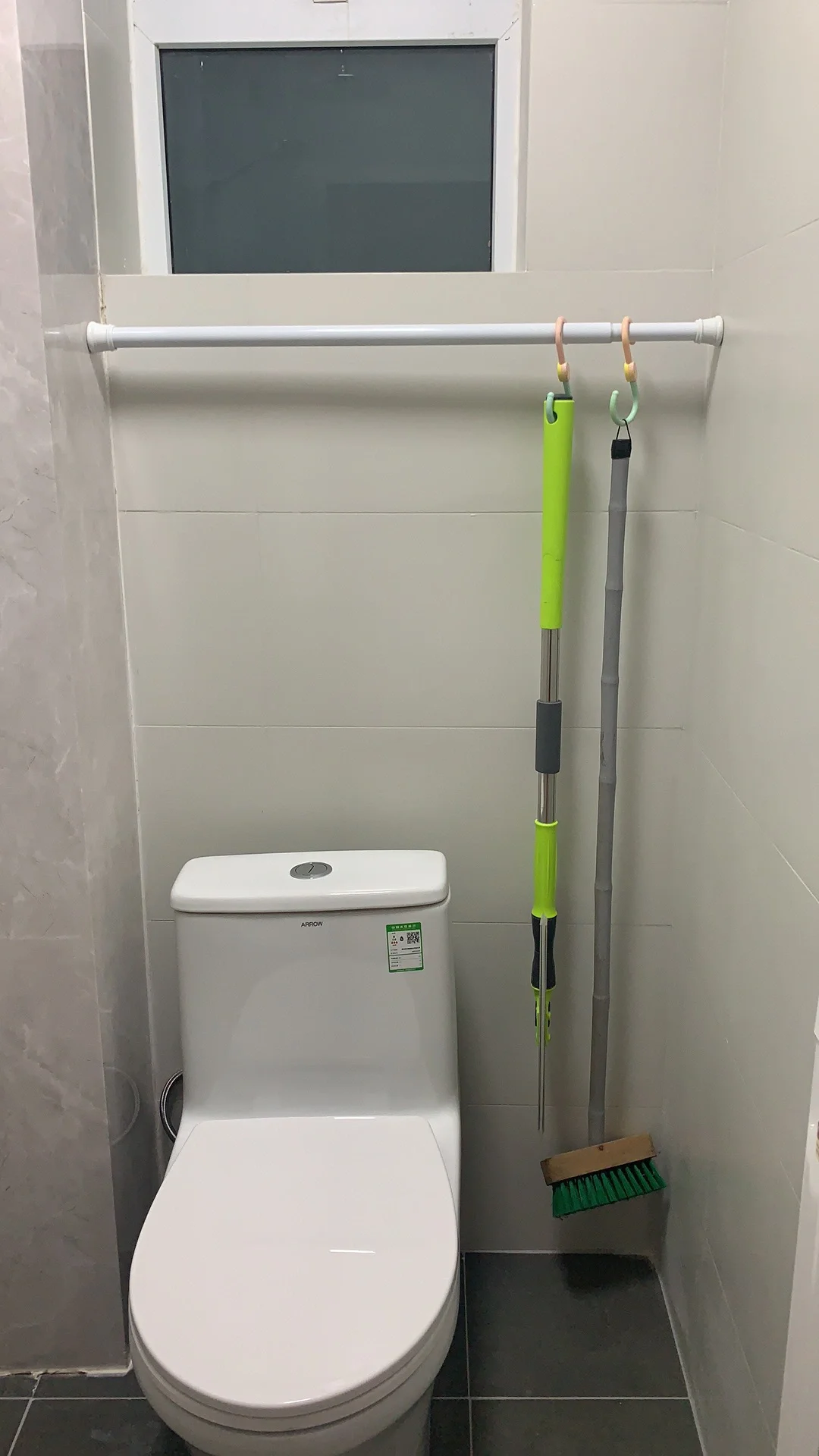 还可以把它放在卫生间,这样扫把拖布直接用挂钩挂在伸缩杆上面,减轻地面收纳的压力,而且悬挂。收纳拖布更容易风干,不会滋生细菌。