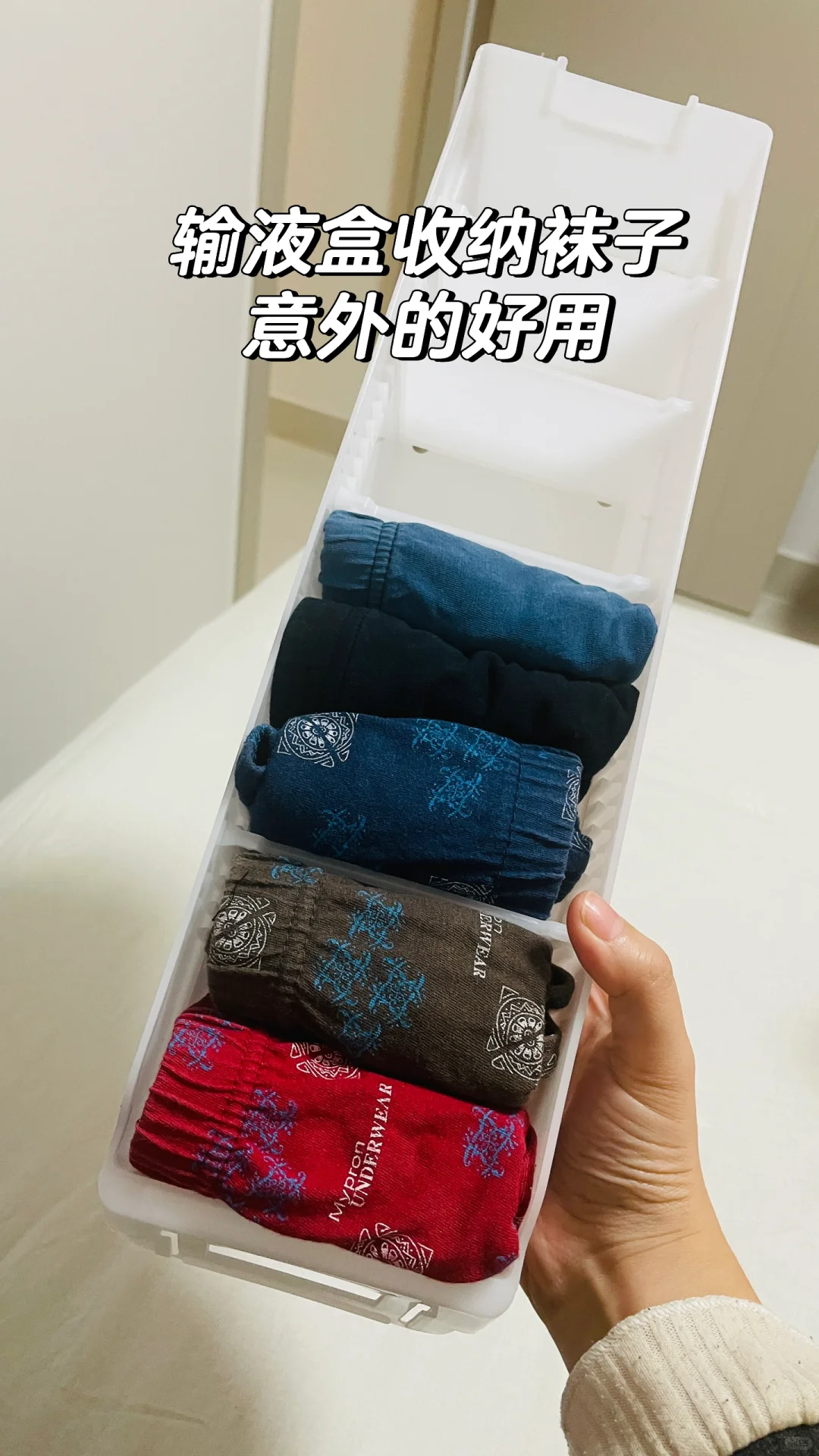 可以用它收纳内裤袜子,大小特别合适,而且收纳之后整整齐齐,一目了然,方便拿取。