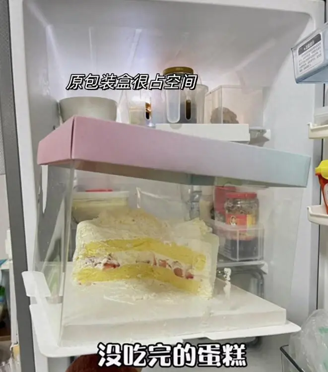 生日蛋糕没有吃完,只能放在冰箱里,但是如果连包装盒一起放冰箱太占地方了,