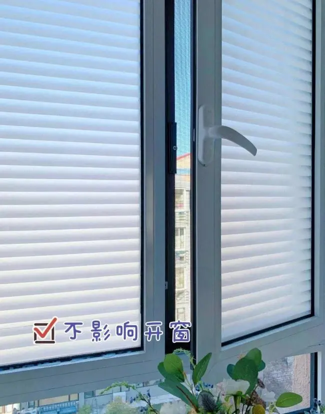连廊户型,别人家一走一过就把你家的厨房看的一清二楚,为了保护隐私,还厨房得有个遮挡,百叶窗太贵了,而且时间长了容易变形,可以买这种仿百叶窗贴膜,透光不透人,