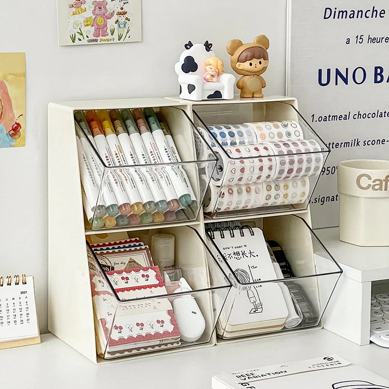 可以把它摆放在书桌上,然后收纳文具用品,透明的亚克力材质,这样收纳的物品一目了然,容量也是非常大的,能装很多,再也不怕书桌杂乱了。