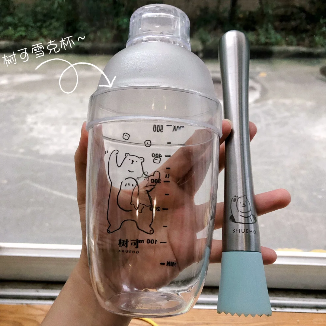 雪克杯是有刻度了,用它做饮品能精准把握用量,而且还能控糖,盖上防溅盖梓之后可以随意捣,一点都不会坚持来,手打果茶简直不要太简单。