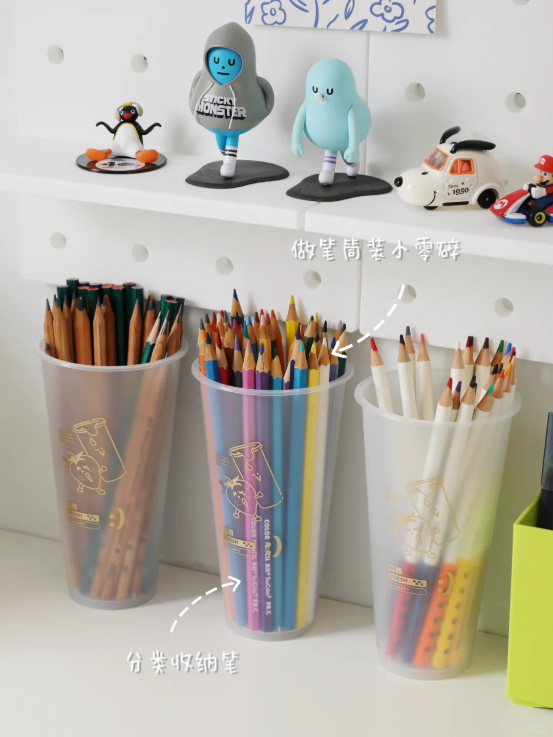做笔筒,将大小规格同意的奶茶被子收纳笔,没有廉价干,经济又实惠,不用花钱买笔筒了。