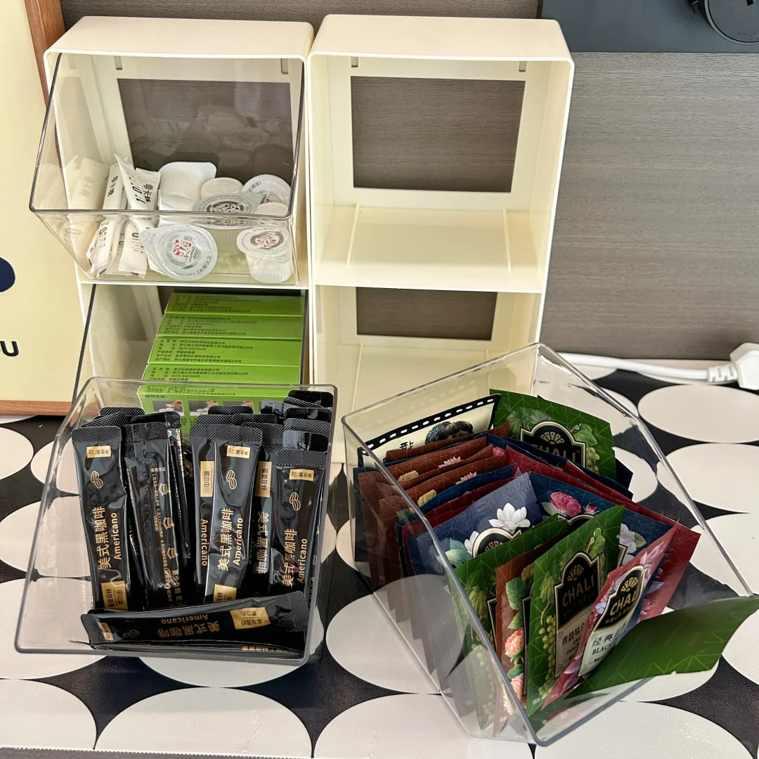 如果你平时喝奶喝茶和咖啡,可以买这种收纳架,不占地方颜值很高,整齐收纳一点都不杂乱,而且它除了可以收纳茶包等东西意外,它还能换个思路收纳。