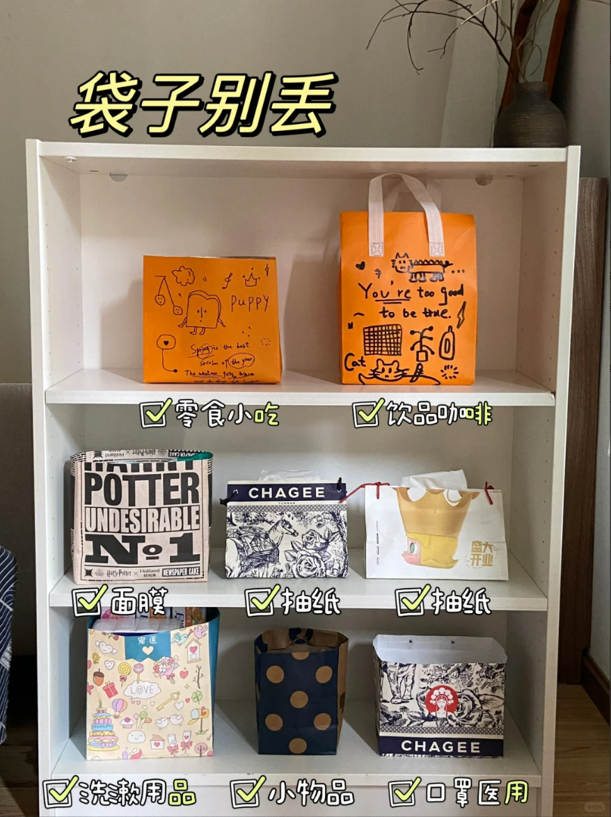 购物袋、塑料袋在我妈手里都能变成宝贝。她会把它们洗干净、叠整齐,下次购物时再用。这样不仅环保,还能省下买垃圾袋的钱。