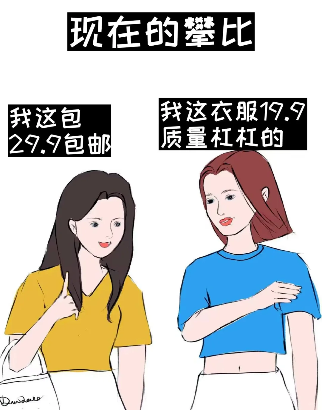 以前的年轻人好像更爱攀比,谁的包包贵,谁的鞋子贵,谁爱穿大品牌,谁爱买奢侈品,但是现在的攀比确实在比谁买的东西更便宜。