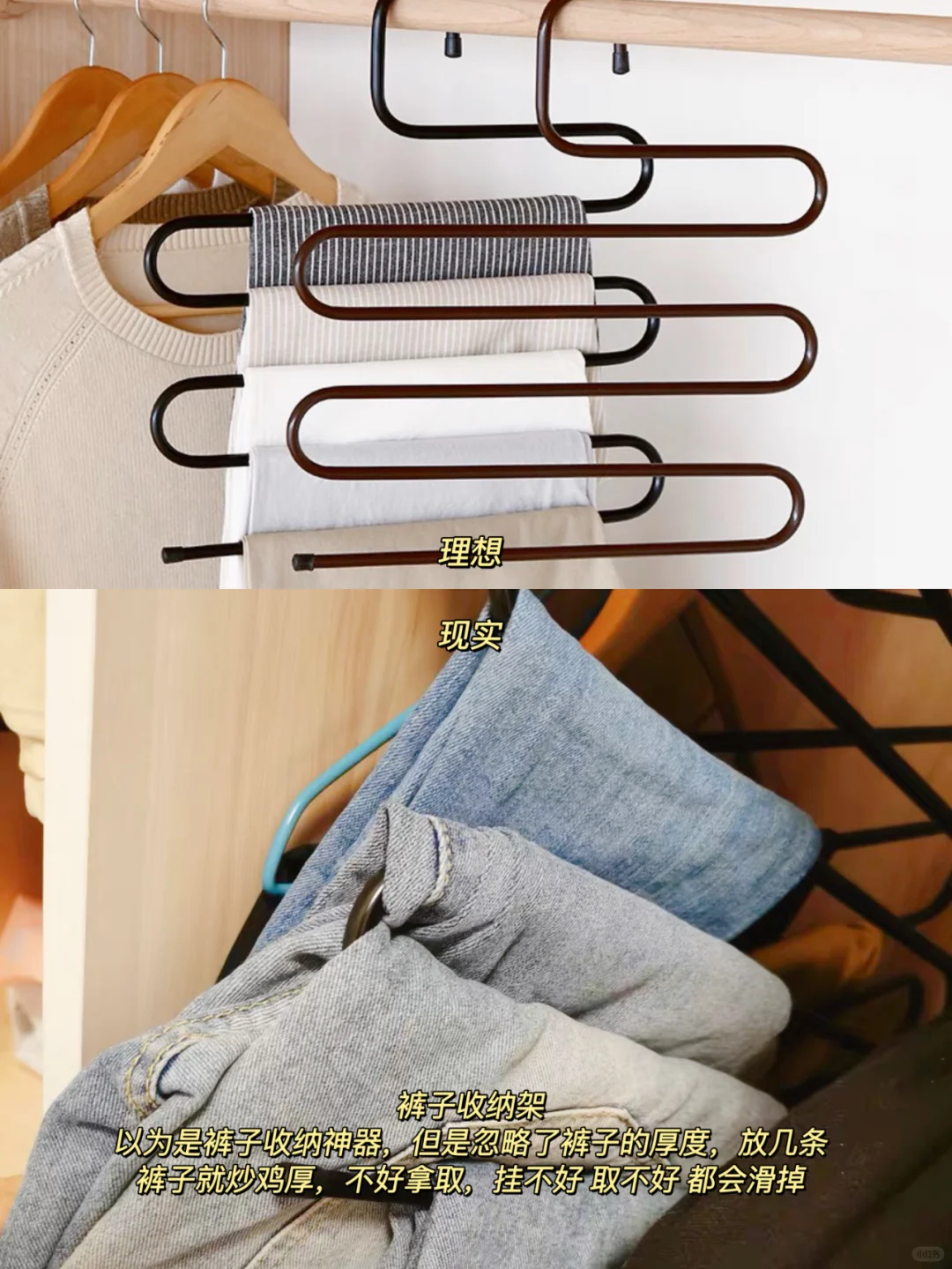 本以为这是一个裤子收纳神器,一个架子上面能够放五六条裤子,再也不用费力他东翻西找了,但是真正用了之后你才发现,根本不是想象中那样美好。
