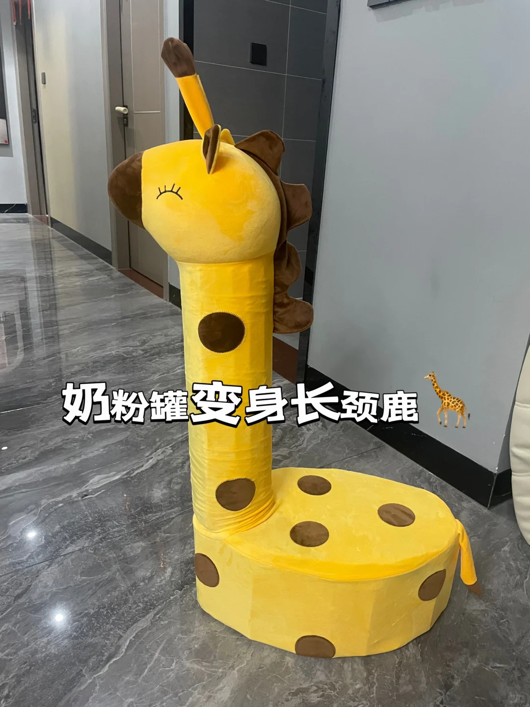 今天用喝完的奶粉罐和废旧纸箱给小崽崽改造一个长颈鹿坐凳玩具,虽然不是很完美,但是头一次亲自动手给孩子制作,也是满满的成就感!