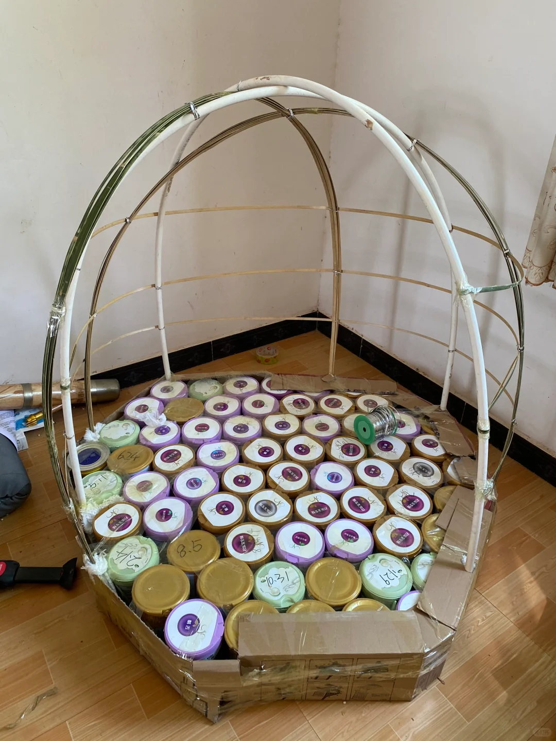 根据怪兽床的方式制作的,虽然没有那么完美,但是把不知道怎么安排的奶粉罐利用了一下,