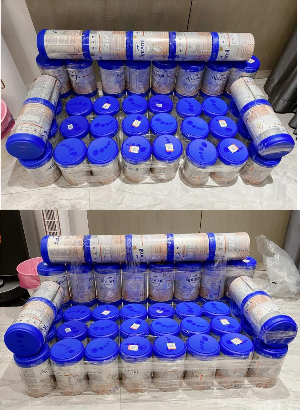 而且把每一个空的奶粉罐全都排成排,这样看上去非常好看。