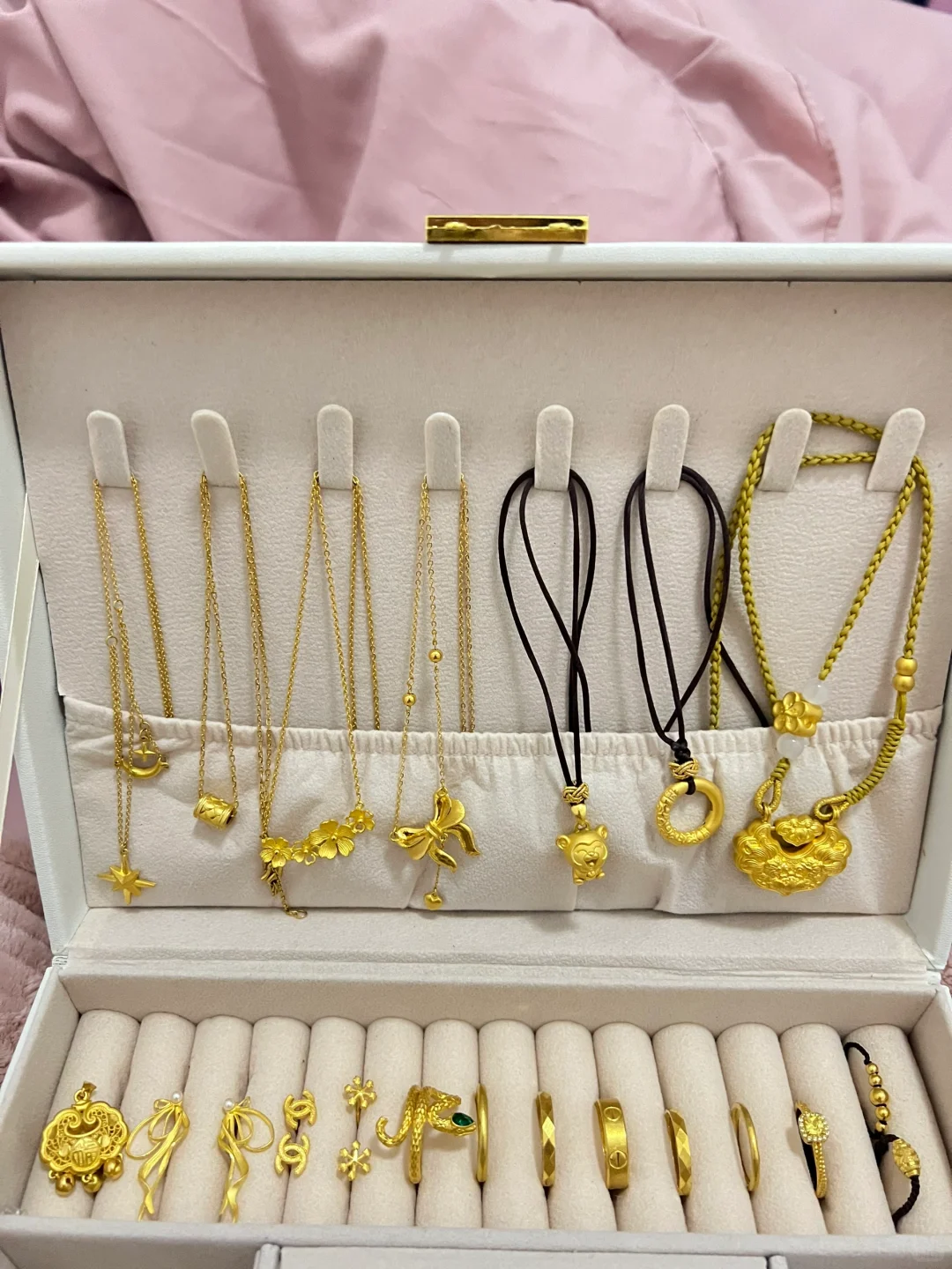 但是没想到这些东西质量一般,般不是出现掉色,就是出现断裂各种情况,回过头来才发现,在首饰上面花的钱也不少。现在才知道买首饰就要买黄金,不会出错还保值。