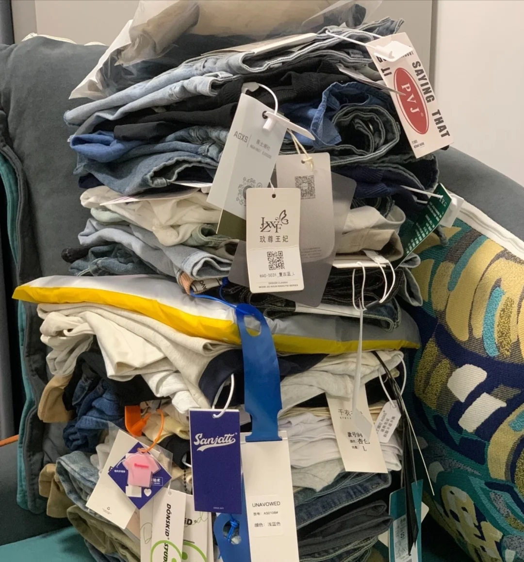 打开衣柜底下的衣服都是买了不穿的,有的甚至吊牌都没拆,这些都是网购回来没那么满意,但是又觉得可以的衣服。