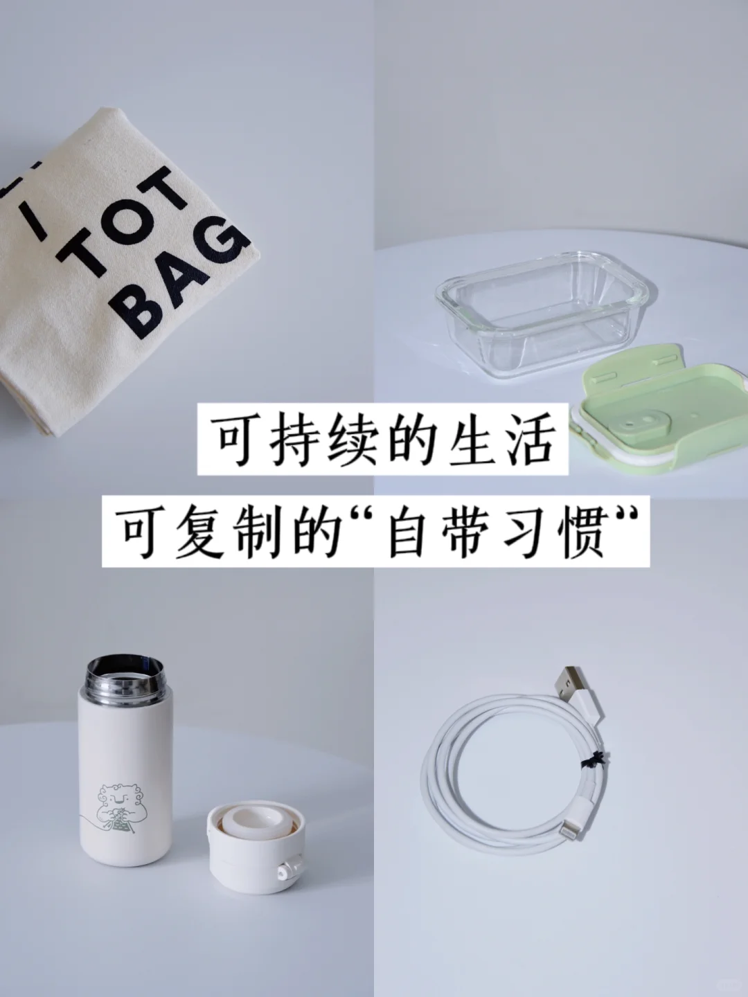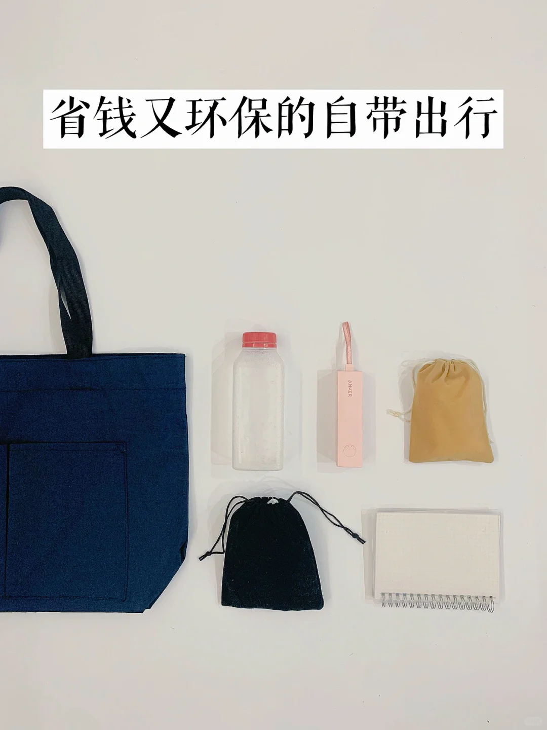 出门三件套,自带水杯、充电宝、购物袋,因为带了水杯,所以不会冒着去买奶茶咖啡,因为带了充电宝不用浪费时间,