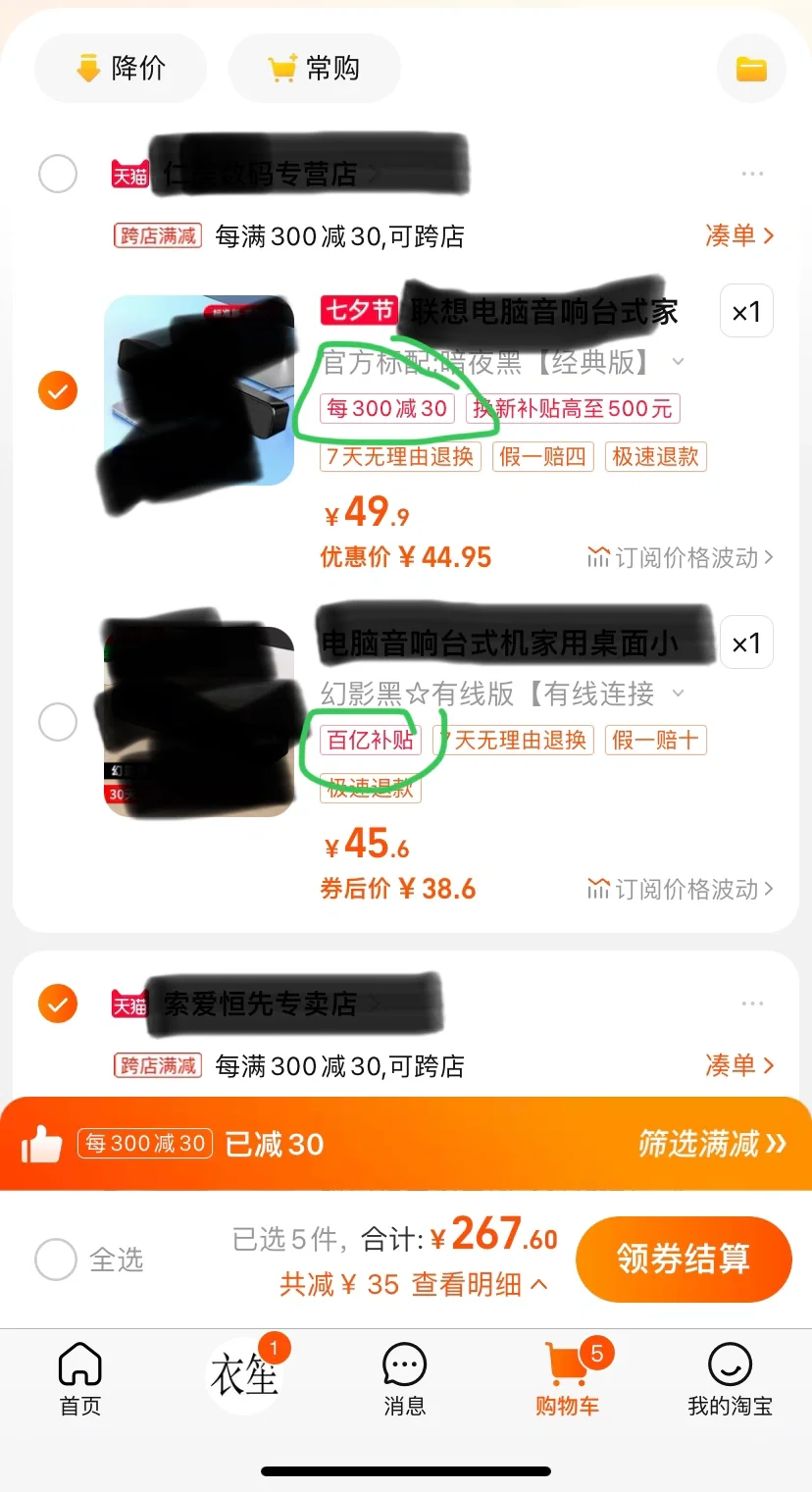 为了能够使用优惠券,省下10块钱又消费了好几十,买了一堆无用的东西。